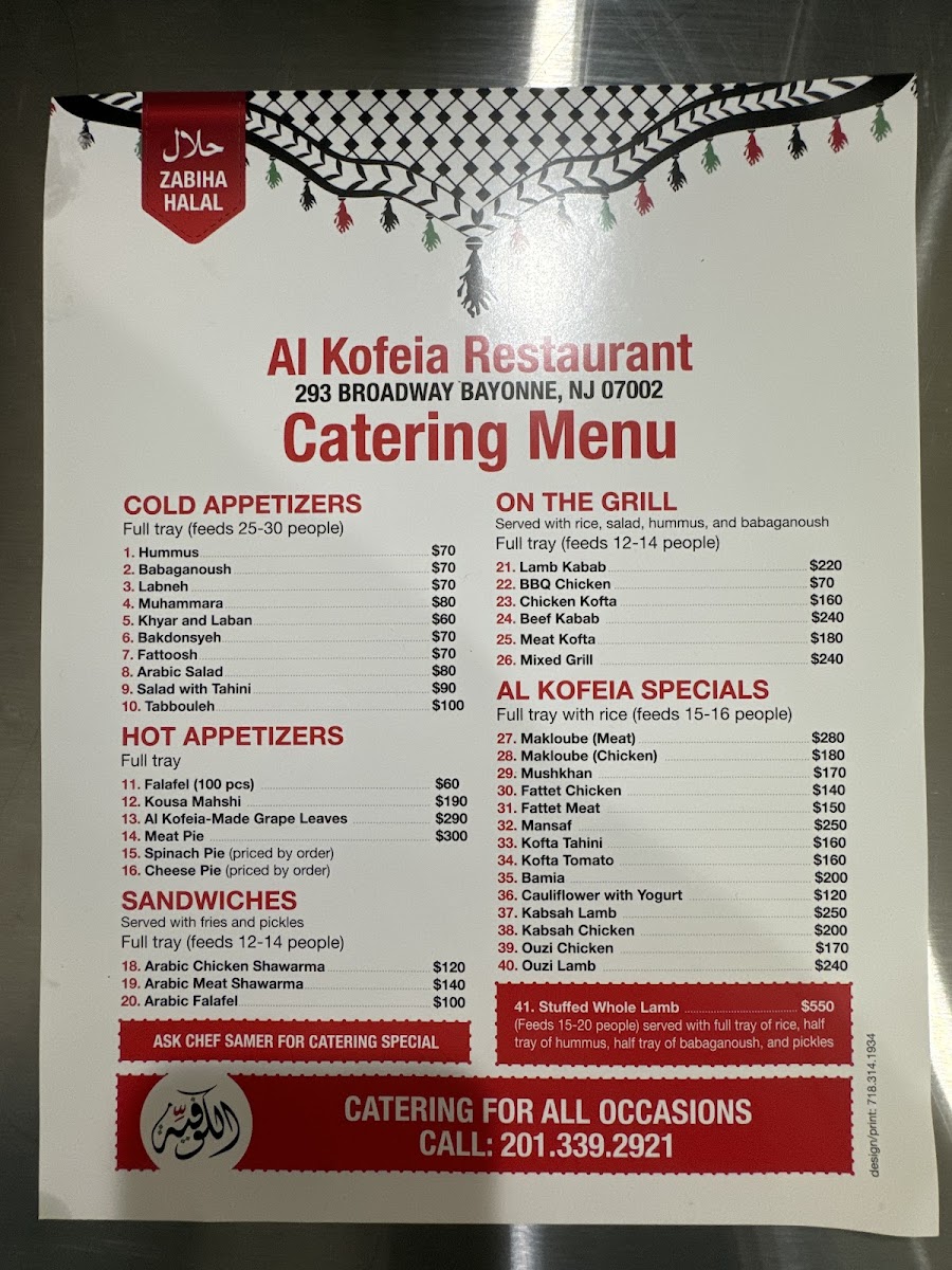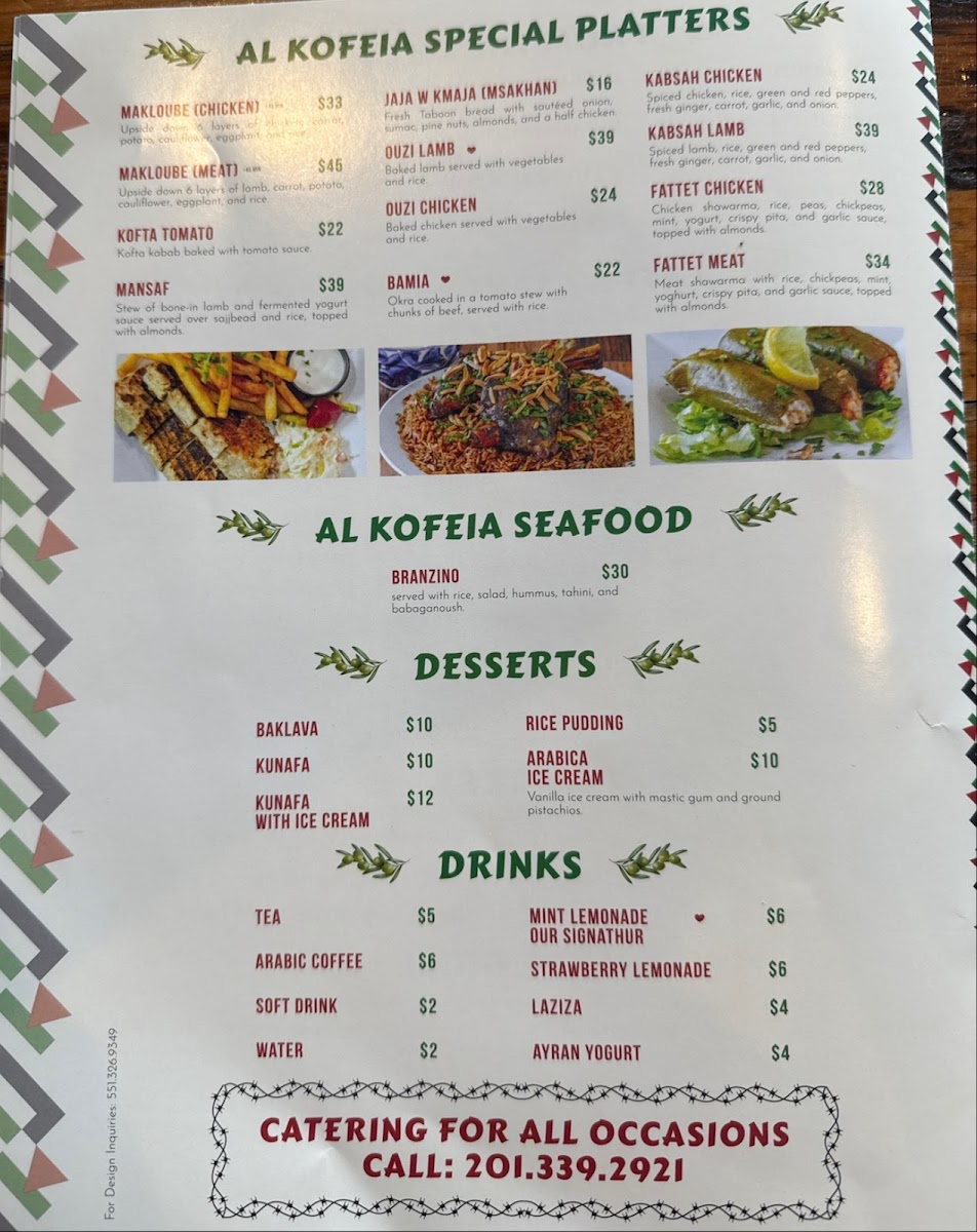 Welcome to Alkofeia Restaurant, a hidden gem located at 293 Broadway, Bayonne, NJ. This intimate dining spot serves a delightful fusion of Palestinian cuisine. The menu features an impressive selection of sandwiches, including the savory Arabic Meat Shawarma and the aromatic Arabic Falafel, both served with flavorful sides. For heartier options, indulge in their special platters, like the exquisite Makloube or the tender Kofta Tahini, showcasing a rich blend of spices and culinary traditions.